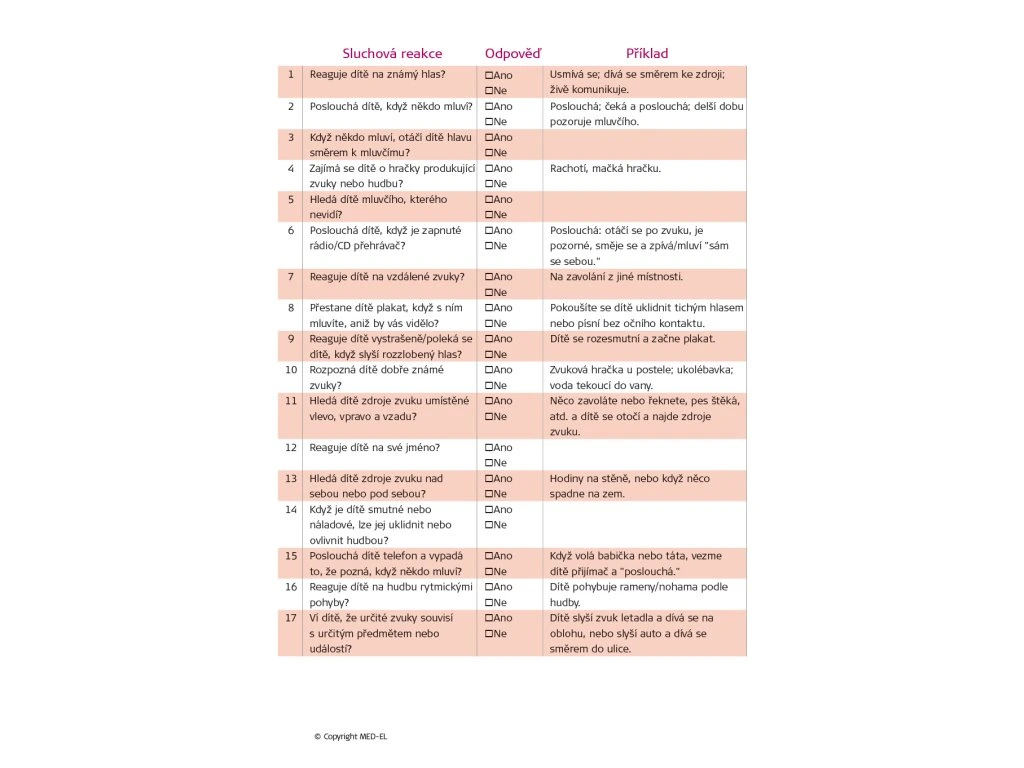 Tento nástroj je vhodný jak pro odborníky, tak pro rodiče, kteří chtějí sledovat a podporovat vývoj sluchu a komunikace u dětí v raném věku.